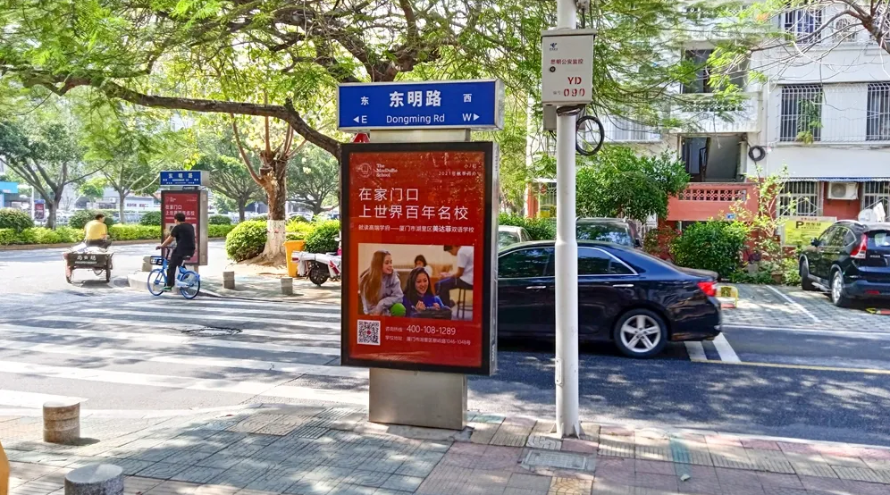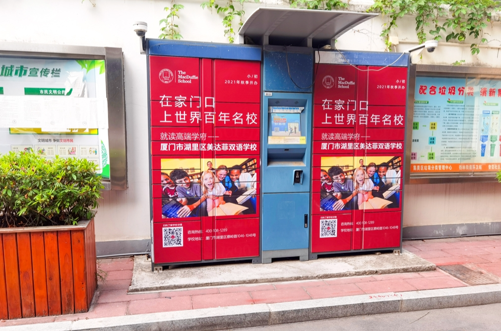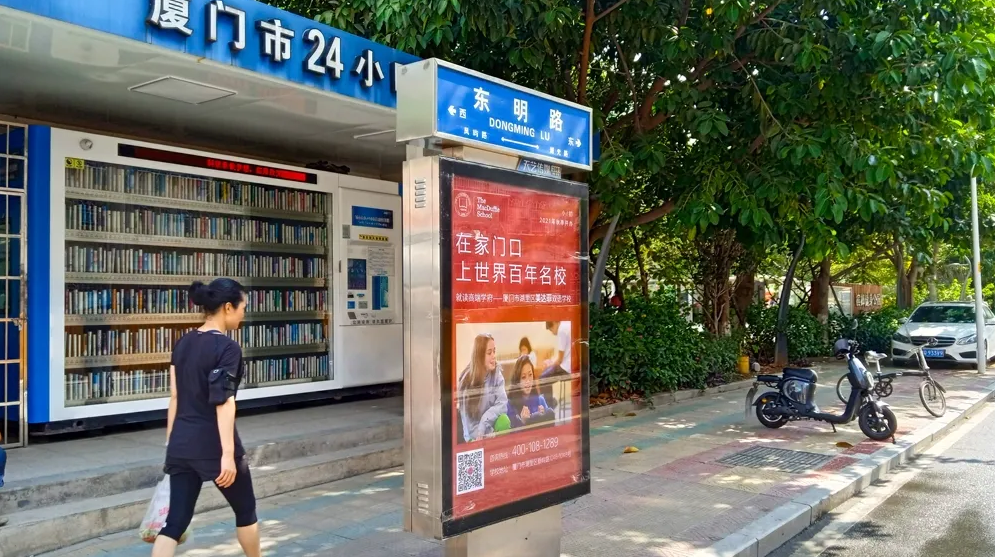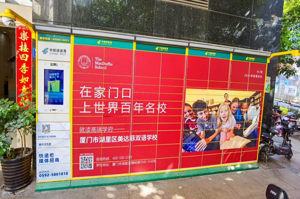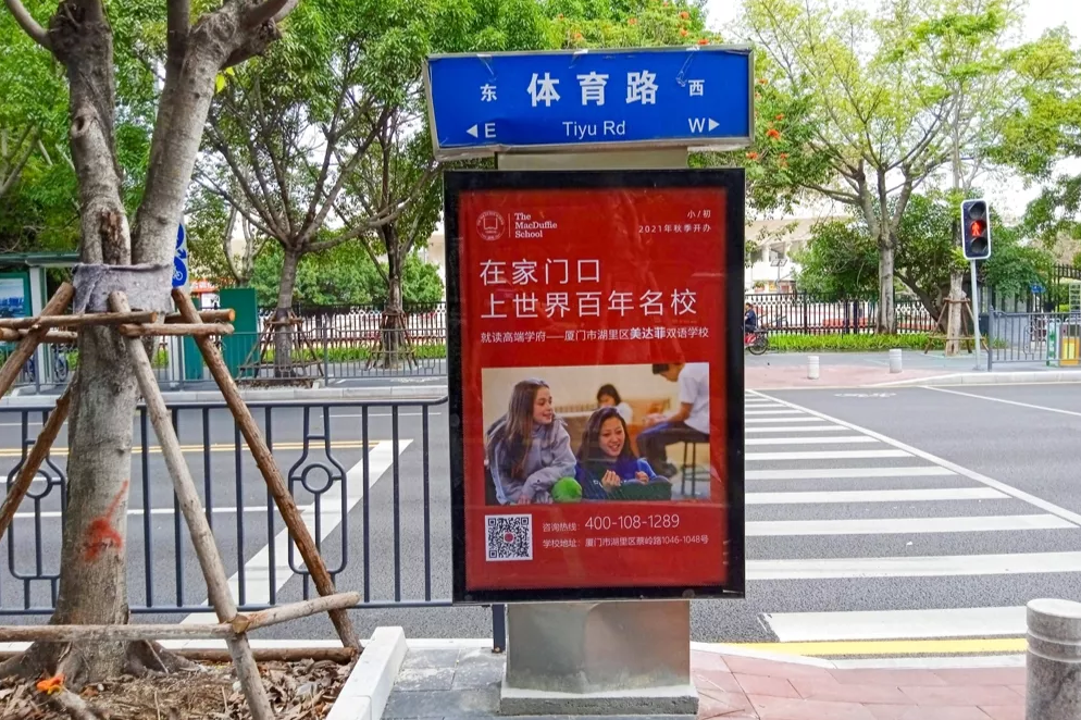 美達(dá)菲在廈門確定扎根后,重視線上線下的一系列宣傳告知,年后即開始在廈門戶外多個(gè)渠道進(jìn)行大范圍的宣傳推廣,以“在家門口,上世界百年名校”為口號(hào),集中在五緣灣、觀音山、會(huì)展、萬達(dá)廣場、蔡塘廣場等多個(gè)中高端商圈、商務(wù)圈,以及仙岳路、廈禾路、嘉禾路等多個(gè)主干道進(jìn)行城市路名牌的投放,同時(shí)在島內(nèi)多個(gè)高端住宅小區(qū)的快遞柜進(jìn)行大幅畫面展示。