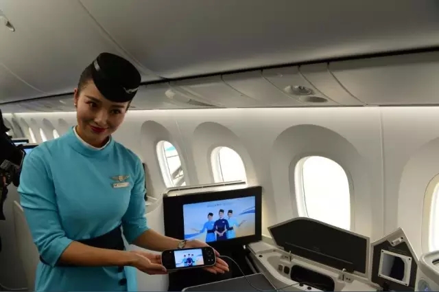 這架B787-9型飛機(jī)在客艙內(nèi)可實(shí)現(xiàn)空地互聯(lián),旅客在飛機(jī)進(jìn)入平飛狀態(tài)后,可利用電腦、iPad等設(shè)備連接客艙內(nèi)Wi-Fi信號(hào),體驗(yàn)收發(fā)郵件、購物、微信等網(wǎng)絡(luò)服務(wù)。